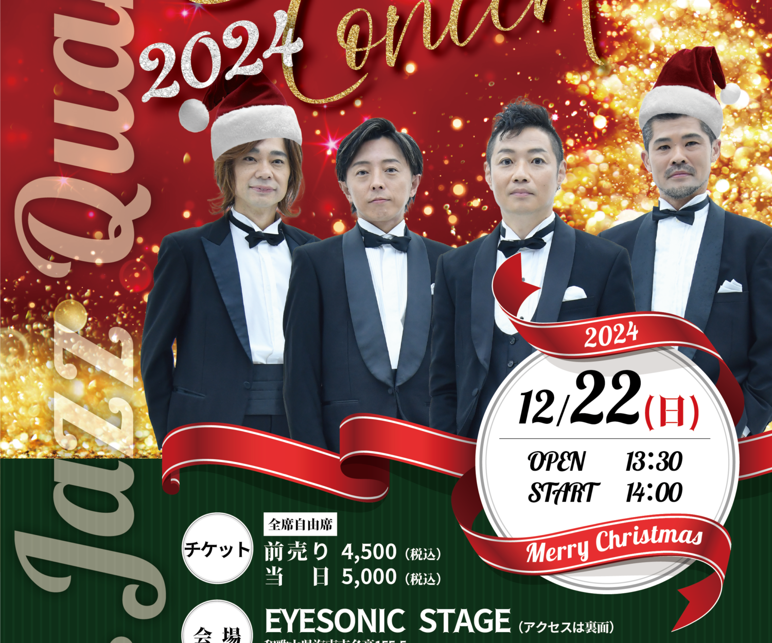 2024年最後を締めくくるMJQLiveでは、和歌山海南EYESONIC STAGEにて「Mr.Jazz Quartet Christmas Concert2024」を開催いたします。 クリスマスはMJQの真骨頂♪MJQはクリスマスのムードを心地よいジャズで創り上げるプロフェッショナルです。 また今年は、古きよき日本の名曲達を、MJQならではの独特なアレンジでお届けする「Japanese Classics vol.1」をリリースし、MJQにとって新たな魅力を展開した素晴らしい1年となりました。そんな老若男女問わず誰もが楽しめるあの曲を盛り込みながら、クリスマスと日本の名曲を掛け合わせたユニークなLIVEで特別なひとときをお楽しみ下さいませ。 お問合せお待ちしております♪ ◆日時 2024年12月22日(日) Open13:30 Start14:00 ◆会場 EYESONIC STAGE 和歌山県海南市名高155-5 073-483-5516 ◆チケット販売…