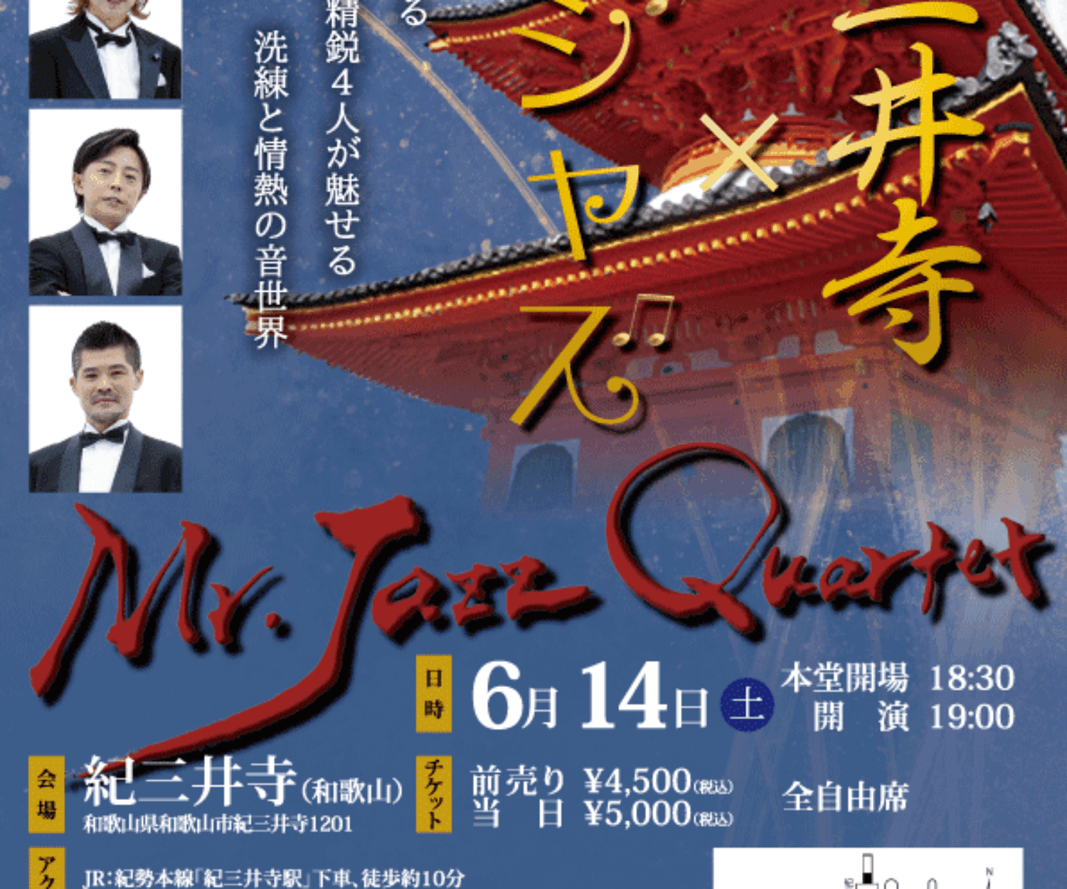 🎷 Mr.Jazz Quartet 2025年6月 関西ツアーのご案内 🎶                 世界配信や名だたるステージで喝采を浴びる、ジャズ界を牽引する精鋭4人。 その確かな技術と豊かな感性が織りなす“洗練と情熱の音世界”が、初夏の関西にやってきます。 一音一音が語り、一瞬一瞬が煌めく。 Mr.Jazz Quartetのステージは、ただの演奏ではなく、空間そのものを変える“音の体験”。 指先から紡がれる音の粒、呼吸するように交錯する音のアンサンブル。…