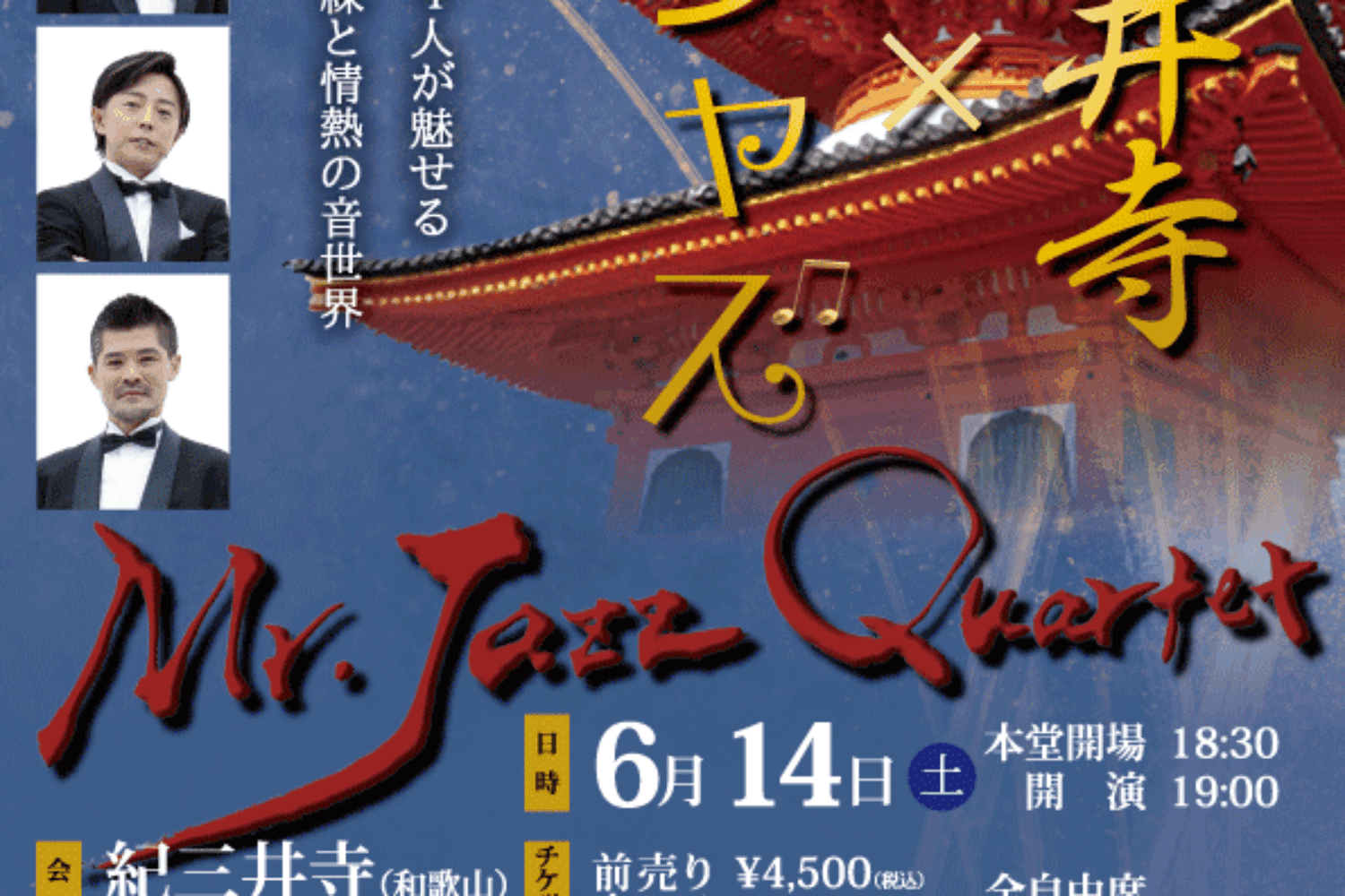 本公演では、実力派ジャズバンド『Mr. Jazz Quartet』による洗練された演奏を中心に、篠山市で活躍する日本民謡歌手『Seima』(三味線・唄)をゲストに迎え、ジャンルを超えた音楽の融合をお届けします。